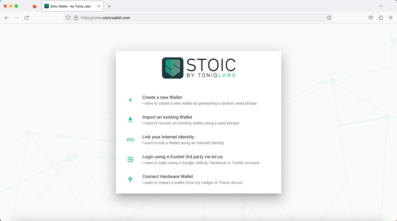 Stoic is a wallet that supports tokens on the IC, including wrapped cycles and NFTs. Support for more than just the Internet Identity. Out of the gate, Stoic supports using both Internet identities and traditional mnemonic phrases, where users can simply create and store a phrase to recover their wallets in the future. This provides a simpler (and somewhat more traditional) way for users to get set up to interact with the IC and ICP tokens.