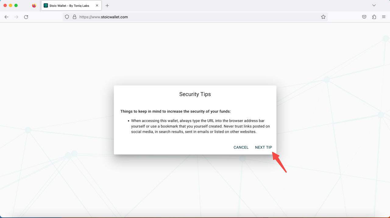 Read and confirm the security tips regarding security funds, then agree by clicking the Next tips button